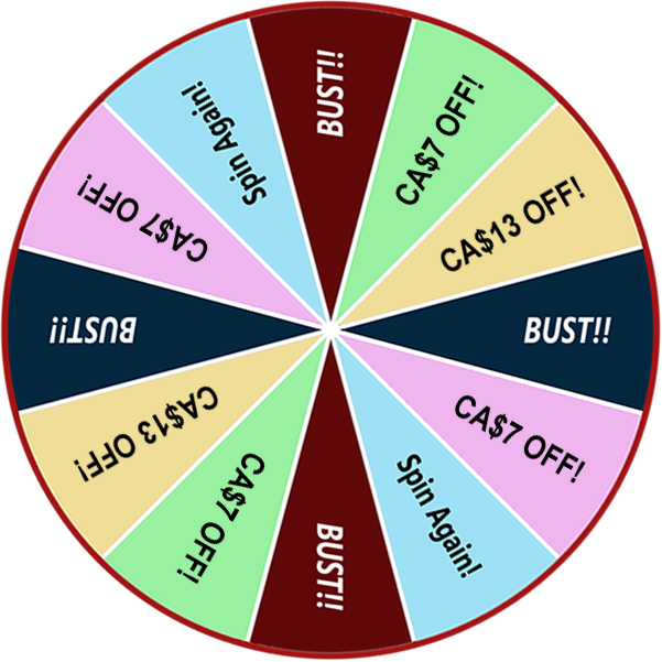 Congratulations! You've won the CA$13 OFF discount! You must use this coupon within the next 5 minutes!